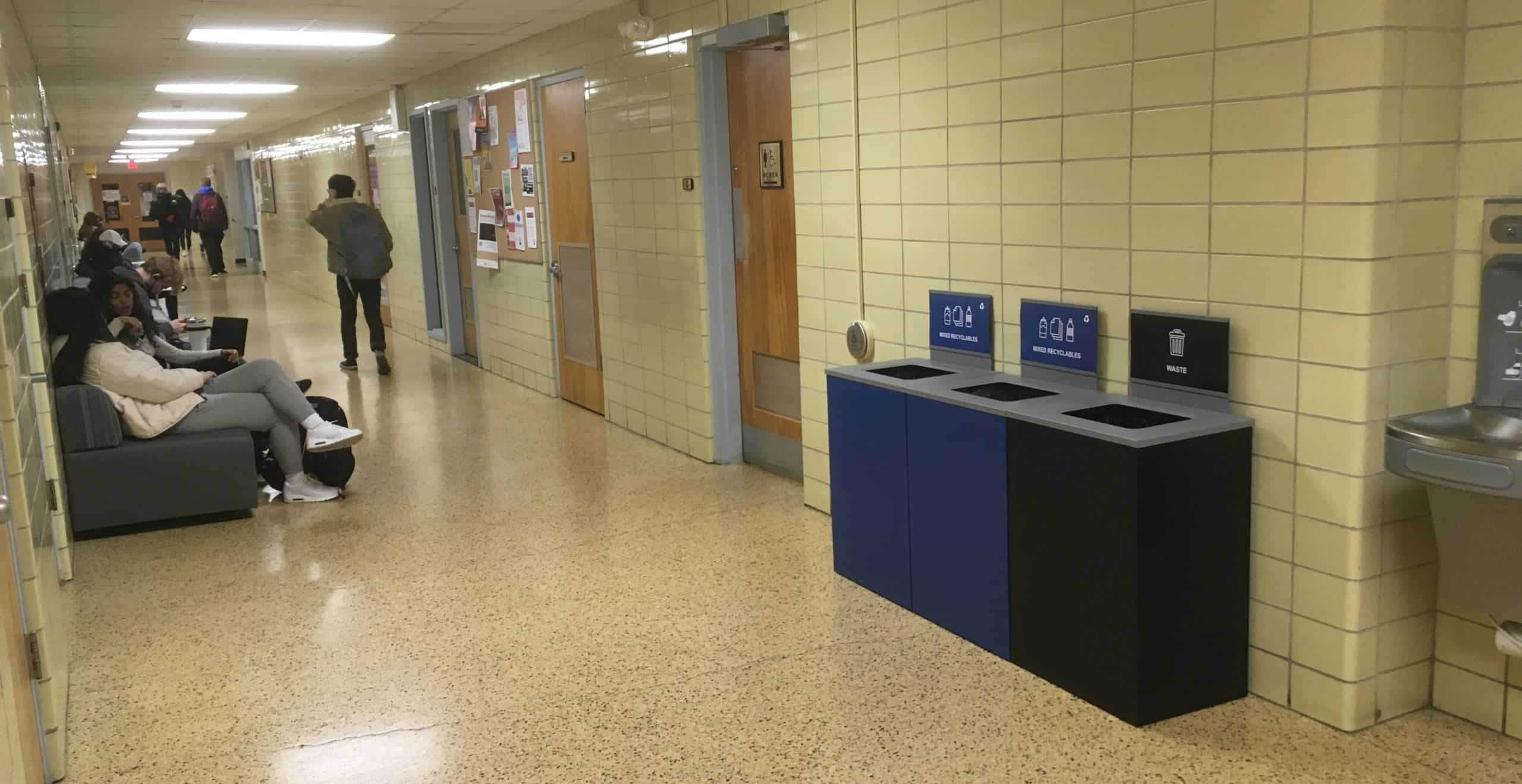With part 2, I’ll share best practices and lessons learned about how to adopt an all-in-the-hall collection system. Similar to the other common example of the centralized collections concept, which requires office workers to carry their personal deskside waste to common area bin stations, removing waste baskets from classrooms and meeting rooms can generate controversy. Some people will complain about having to handle their own waste whereas custodians may have concerns about increased litter, or feel pressured to buck the new system. Overcoming these objections and achieving the best possible diversion and operational outcomes requires, among other things, close coordination with various stakeholders, modifications to the broader waste bin infrastructure, and a communication strategy to retrain students, faculty, and others to the new system.