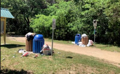 For Gauthier, the process is a mixture of trial and error, and suggesting alternate arrangements. Instead of maintaining redundant bins to handle the extra waste from heavy use occasions like special events, she encourages district managers to roll out portable light weight bins as needed. Working together, the Austin team has been experimenting with a concept that any public works administrator would consider the holy grail of waste management: a pack-it-in, pack-it-out system that eliminates both trash and recycling bins while instructing visitors to take waste items with them. Previous pilots have shown mixed results. It’s worked successfully in smaller pocket parks and certain nature trail locations, and in fact there are active plans to expand the practice to similar locations. Traditional city parks with picnic areas, playgrounds and other amenities? Not so much. Like other communities, PARD has found that special signage and outreach couldn’t overcome ingrained expectations, and that removing bins from larger, multiple use settings resulted in significantly more litter.