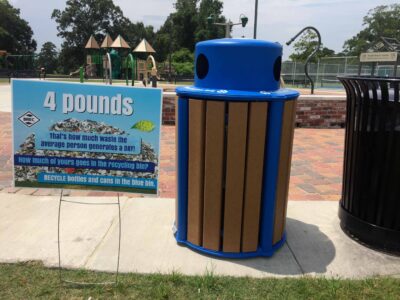 Formally referred to as The Recreation and Park Commission for the Parish of East Baton Rouge, this agency oversees a wide range of over 170 parks and other public facilities covering most of Louisiana’s capitol city. According to BREC’s Assistant Director of Natural Resource Management, Amanda Takacs, the agency first launched recycling using 55-gallon drums at a sports park in 2014. Grants from Keep America Beautiful and it’s Louisiana affiliate allowed them to introduce recycling at four large community parks. With these early efforts providing the “proof of concept”, the parks commission in 2018 agreed to fund an expansion of recycling that now includes a total of ten community parks and sports facilities. Further plans call for extending the program to the remaining five larger community parks and a handful of conservation areas in the coming years. Recycling is just one element of the agency’s Geaux Green initiative, which is tasked with pursuing strategic sustainability goals around energy and waste conservation, sustainable building design and environmentally preferable purchasing among other areas.