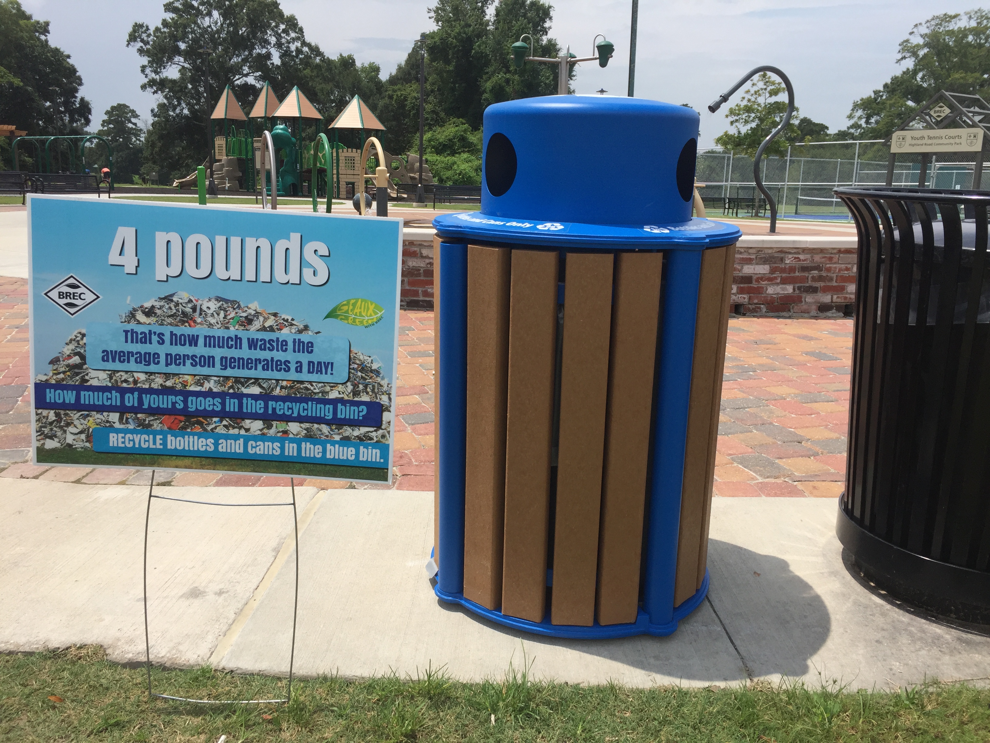 Formally referred to as The Recreation and Park Commission for the Parish of East Baton Rouge, this agency oversees a wide range of over 170 parks and other public facilities covering most of Louisiana’s capitol city. According to BREC’s Assistant Director of Natural Resource Management, Amanda Takacs, the agency first launched recycling using 55-gallon drums at a sports park in 2014. Grants from Keep America Beautiful and it’s Louisiana affiliate allowed them to introduce recycling at four large community parks. With these early efforts providing the “proof of concept”, the parks commission in 2018 agreed to fund an expansion of recycling that now includes a total of ten community parks and sports facilities. Further plans call for extending the program to the remaining five larger community parks and a handful of conservation areas in the coming years. Recycling is just one element of the agency’s Geaux Green initiative, which is tasked with pursuing strategic sustainability goals around energy and waste conservation, sustainable building design and environmentally preferable purchasing among other areas.