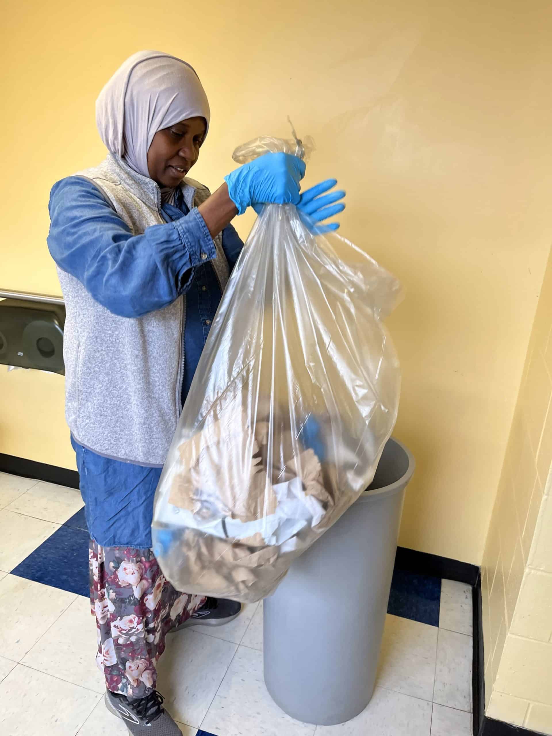 Emptying a waste basket may seem like a negligible time commitment, but the numbers suggest otherwise. APPA, the association for higher ed facilities professionals publishes FTE estimating protocols as part of the key performance indicators in their Custodial Operational Guidelines for Educational Facilities. They calculate it takes an average 46 seconds to empty and re-bag trash receptacles in a traditional 1,200 square foot room. Extrapolated for 100 classrooms, that’s about 70 minutes a day. The guidelines also calculate that wiping off grime and spillage uses up another 61 seconds of labor per bin, per week. Toss these numbers into a calculator and those 100 bins eat up close to 7 1/2 hours of labor each week just to manage trash. To bring recycling into rooms roughly doubles this number. Custodians, of course, still handle the same volume of waste with all-in-the-hall. But having individuals carry their waste out to a relative handful of centralized hallway bins allows them to manage the collection process with much greater efficiency.