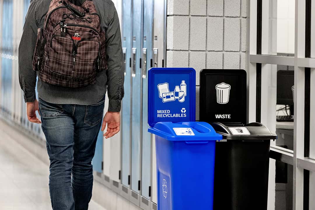 Managing waste and recycling for a large institution is deceptively complex. Most of the practices and initiatives it takes to build a successful waste diversion program involves costs and logistical trade-offs, and often delivers only incremental improvements. Whether it’s in a classroom or office deskside context, a centralized collection/all-in-the-hall system has an elegance rare to facilities management; it leads to better performance outcomes. It lowers your institution’s impact on the environment. It requires minimal investment while reducing costs and freeing custodial labor to focus on more important cleaning tasks.