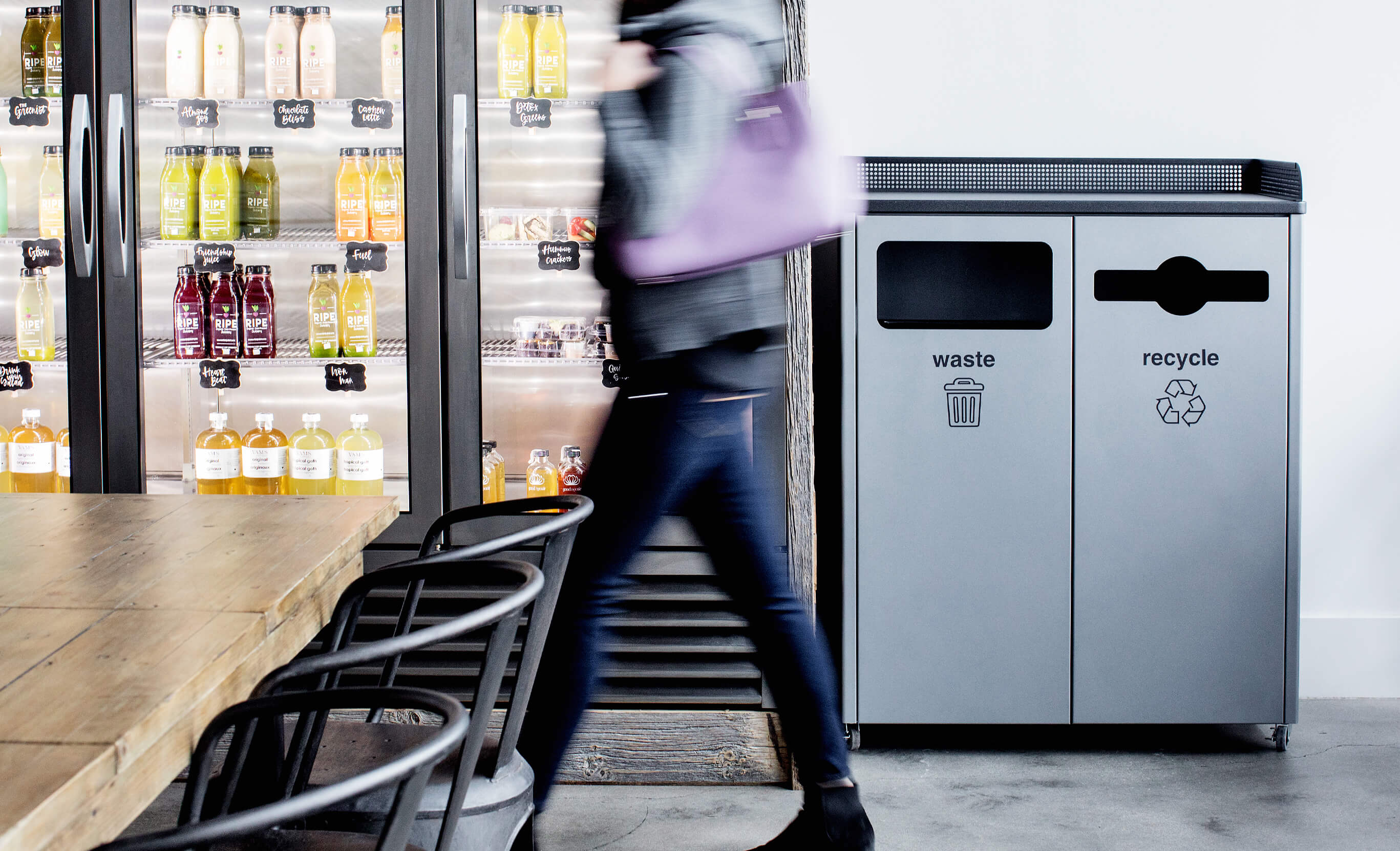 - The Courtside's fenced in top intuitively communicates the users' responsibility to return their tray as they discard their waste.