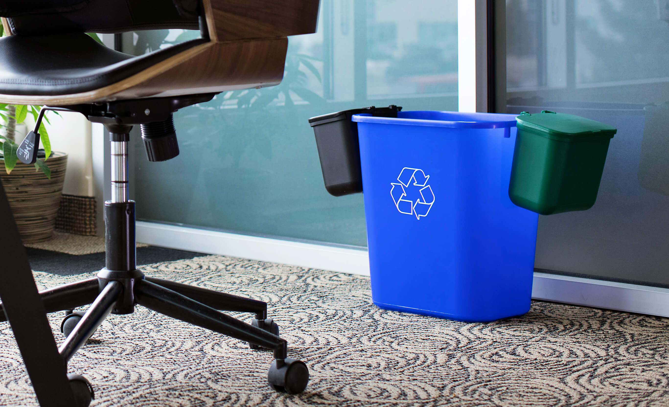 OFFICE COMBO – Triple – Kit – Mobius Loop-We Recycle – No Lid – Blue-Green-Black PCR