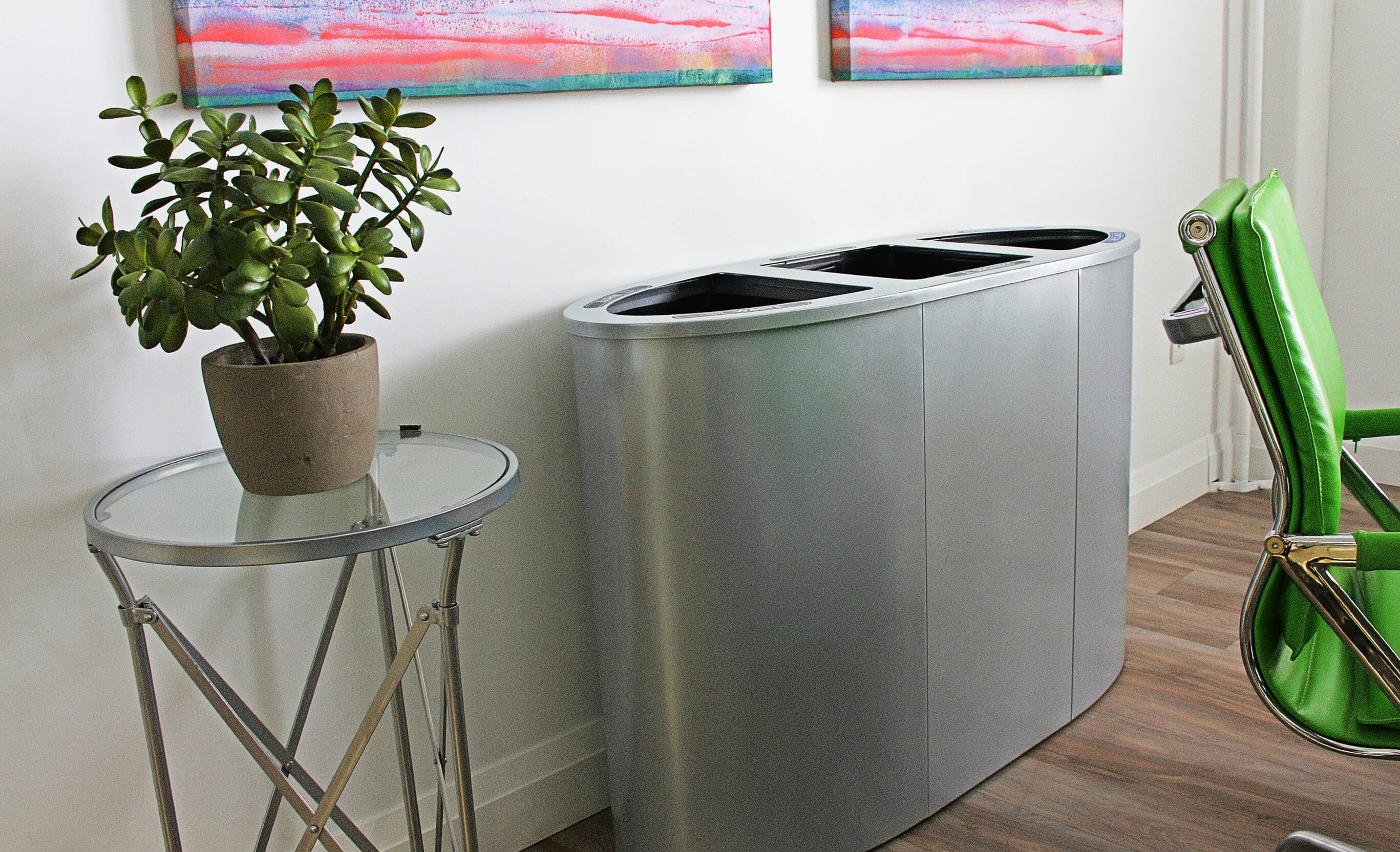 The Pacific recycling & trash receptacle provides an attractive, modern and efficient all-in-one solution for public space waste & recycling collection. The Pacific is ideal for corporate offices, malls, university campuses, and other environments where ruggedness, maintenance ease and efficient use of space are priorities