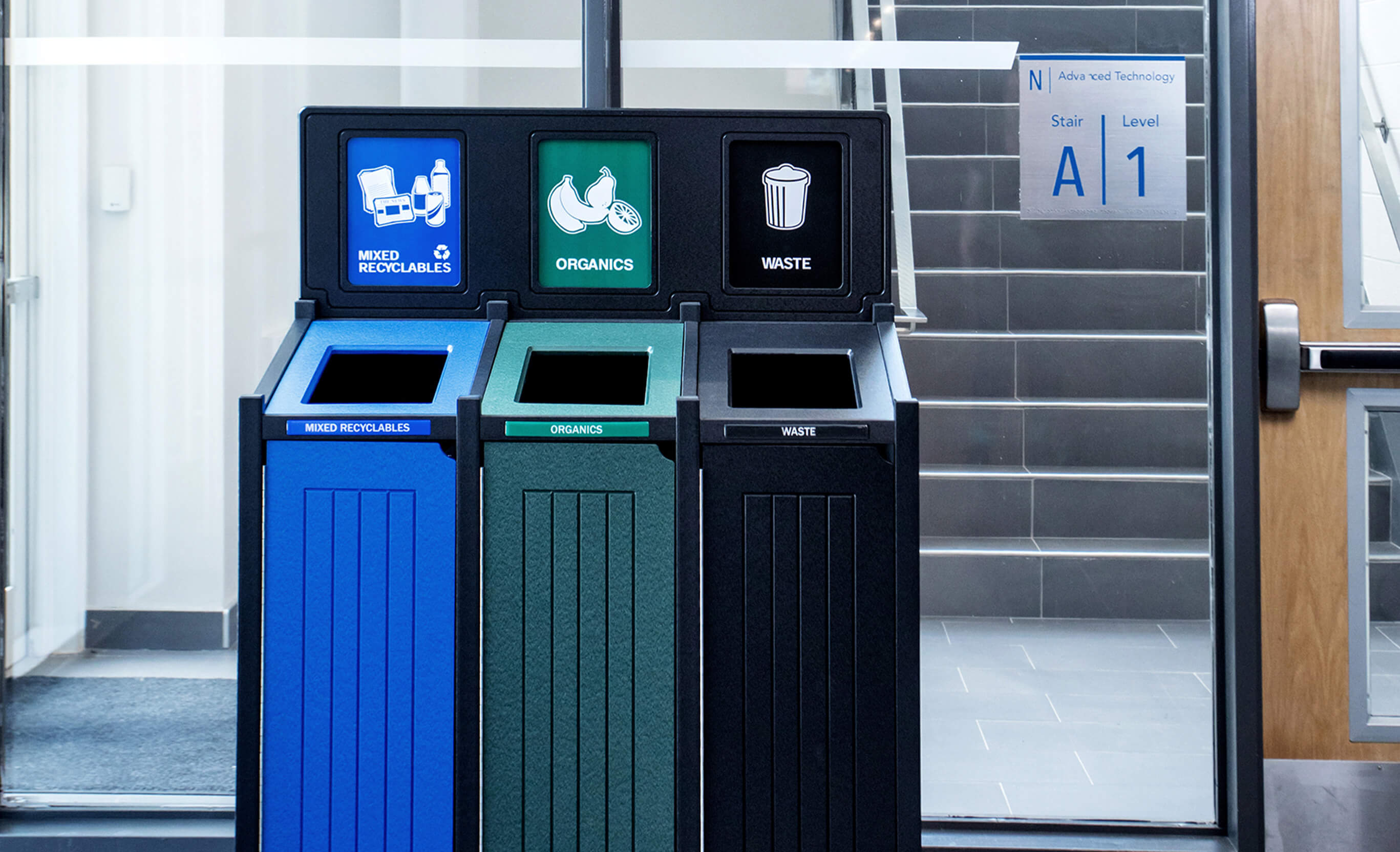 - Optional backboard signage provides additional space to designate streams and divert waste.
